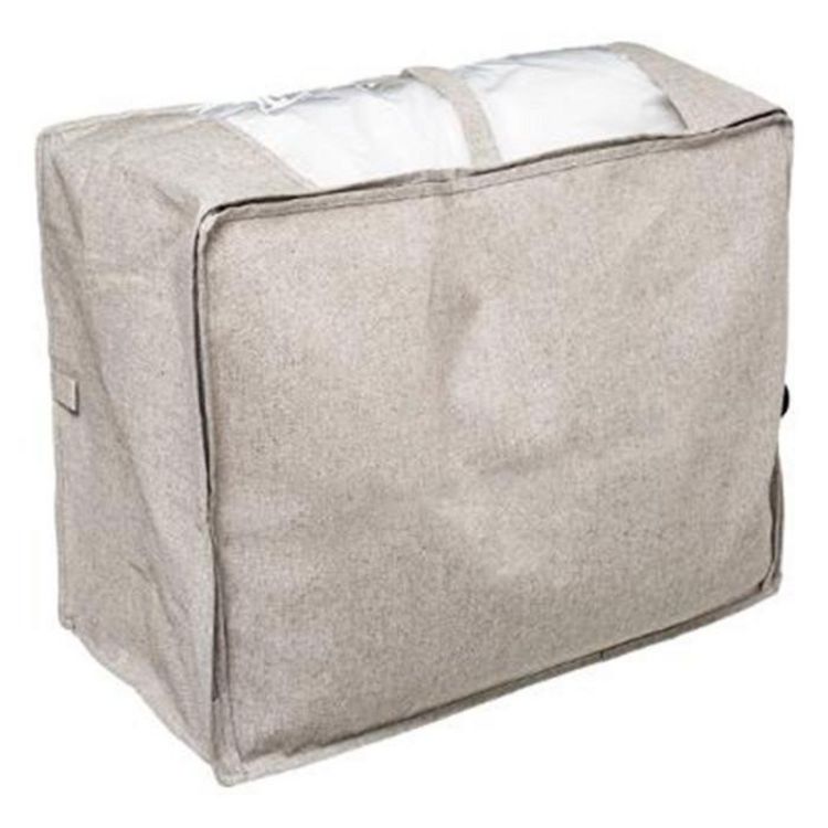 Informations Techniques : Dimensions : L. 60 x l. 45 x H. 30 cm Matière : Polyester, Polypropylène, Polyéthylène & Coton Spécificités : Utile & Pratique Housse de Rangement Forme Rectangulaire Poids : 0,31 kg Couleur : Beige