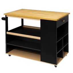 Ilot de cuisine à roulettes - Noir et beige