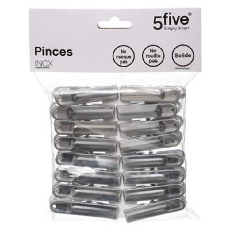 Lot de 16 Pinces à Linge Inox 6cm Gris
