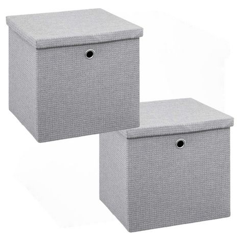 Lot de 2 boites de rangement en tissu avec couvercle - 31x31x31cm - Gris