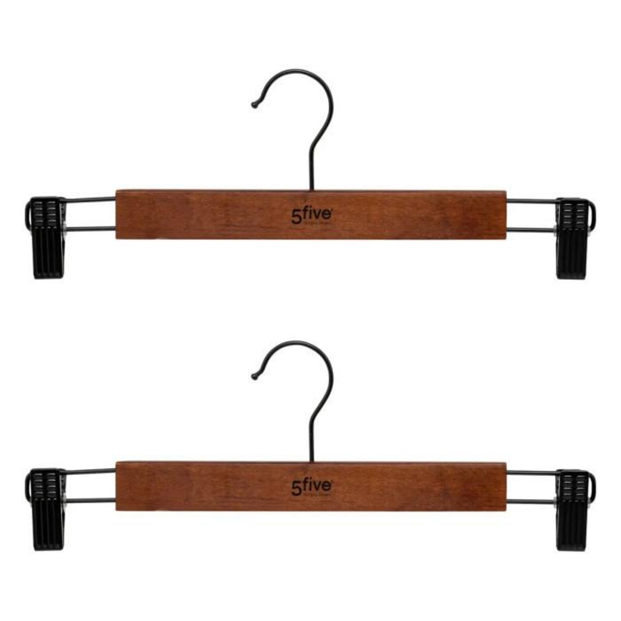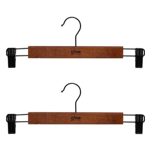 Lot de 2 Cintres à Pince en Bois Vintage 33cm Marron