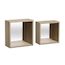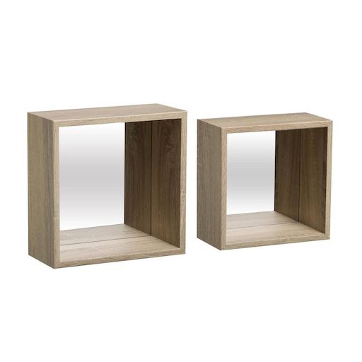 Informations Techniques : Dimensions : Taille 1 : L. 24 x l. 12 x H. 24 cm Taille 2 : L. 27 x l. 12 x H. 27 cm Matière : MDF Spécificités: Tendance & moderne Lot de 2 Étagères Murales Forme Carrée Miroir dans le fond du Cube Poids : 2,4 kg Couleur : Naturel