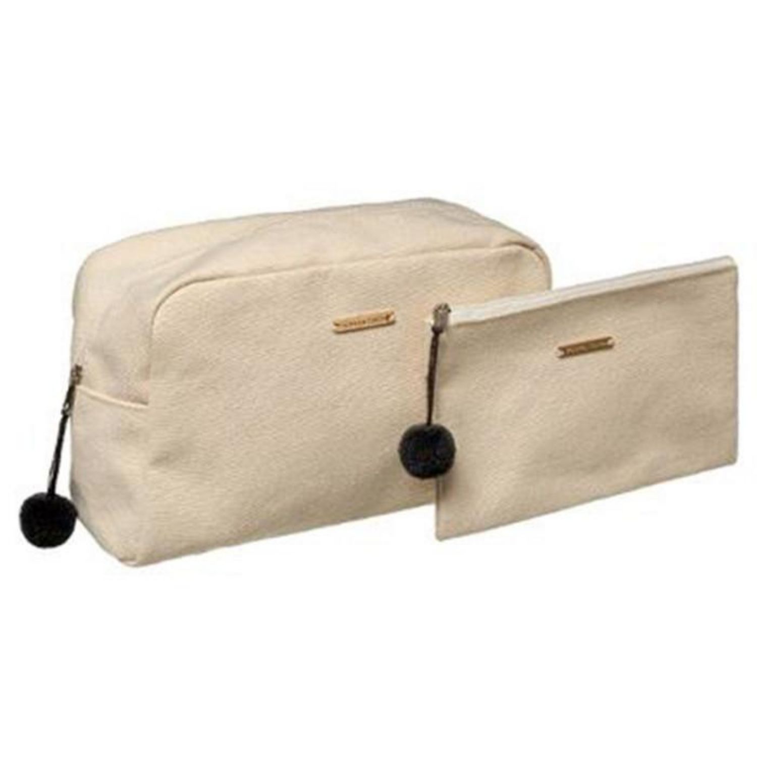 Informations Techniques : Dimensions : Taille 1 : L. 26 x l. 11 x H. 14 cm Taille 2 : L. 19,5 x l. 12 cm Matières : Polyester & Coton Spécificités : Tendance & Déco Lot de 2 Trousses de Toilette 2 Tailles Avec Pompons Poids : 0,15 kg Couleur : Blanc
