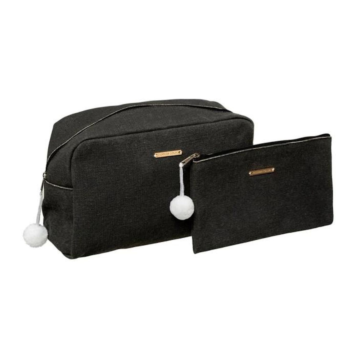 Informations Techniques : Dimensions : Taille 1 : L. 26 x l. 11 x H. 14 cm Taille 2 : L. 19,5 x l. 12 cm Matières : Polyester & Coton Spécificités : Tendance & Déco Lot de 2 Trousses de Toilette 2 Tailles Avec Pompons Poids : 0,15 kg Couleur : Charbon