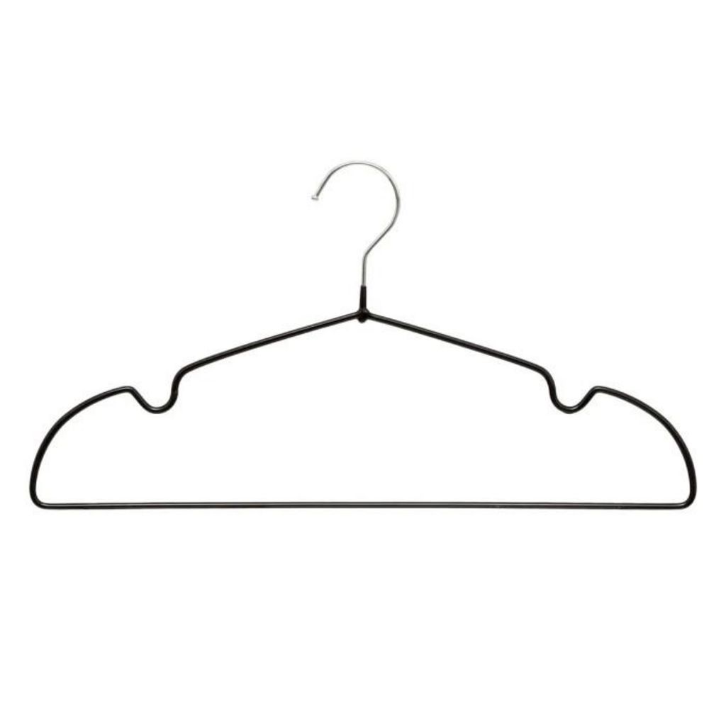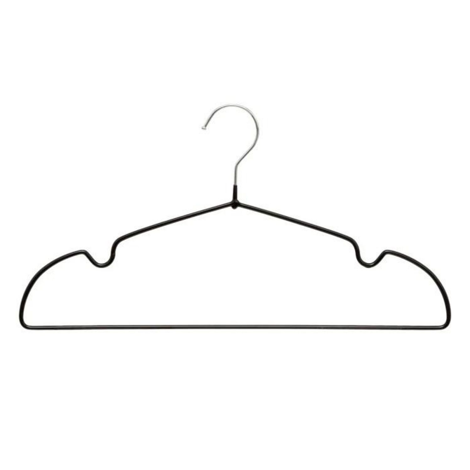 Informations Techniques : Dimensions : L. 40,5 x l. 0,4 x H. 21 cm Matières : Acier & PVC Spécificités : Pratique & Utile Lot de 20 cintres antidérapants Avec encoches spéciales bretelles N'abîme pas les vêtements Poids : 0,04 kg Couleur : Noir