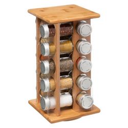 Informations Techniques : Dimensions : L. 18 x l. 18 x H. 34 cm Matière : Bambou Spécificités : Tendance & Pratique Lot de 20 Pots à Épices Forme Carrée Avec Support & Épices incluses Capacité des pots : 85 ml Contient : 1 x Poivre rouge, 1 x Wasabi, 1 x Basilic, 1 x Sel rose d'Himalaya, 1 x Coriand