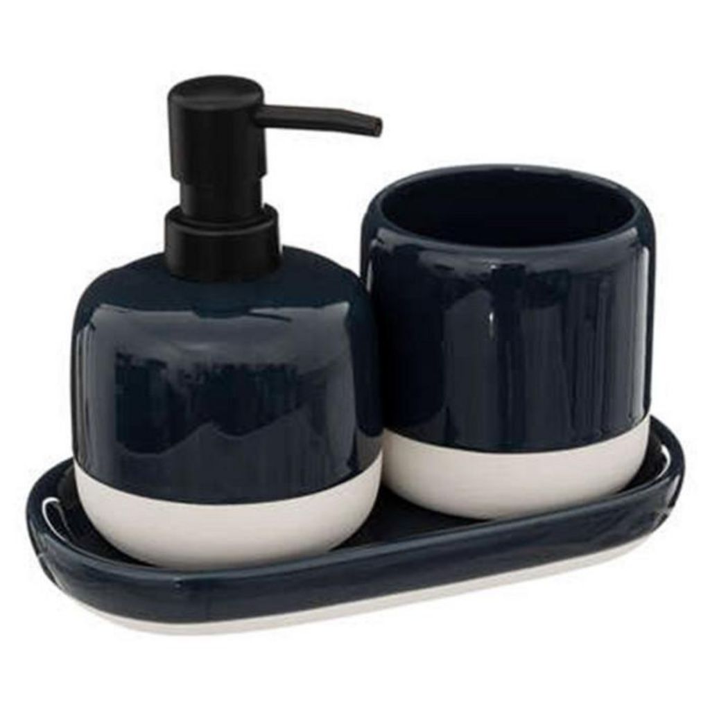 Informations Techniques : Dimensions : L. 20,8 x l. 11,2 x H. 21,5 cm Distributeur : D. 9 x H. 13,5 cm Gobelet : D. 9 x H. 9,3 cm Plateau : L. 20,5 x H. 2,7 cm Matière : Dolomite Spécificités : Pratique & Utile Lot de 3 Accessoires de Salle de Bain Contient 1 Distributeur de Savon, 1 Gobelet & 1 Pla