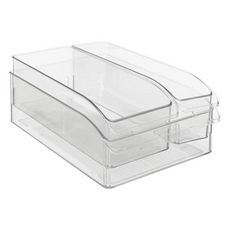 Informations Techniques : Dimensions : Taille S : L. 30,5 x l. 8 x H. 9 cm Taille M : L. 30,5 x l. 13 x H. 9 cm Taille L : L. 30,5 x l. 21 x H. 9 cm Matière : PET Spécificités : Pratique & Utile Lot de 3 bacs de rangement Avec des tailles différentes Poids : 0,93 kg Couleur : Transparent