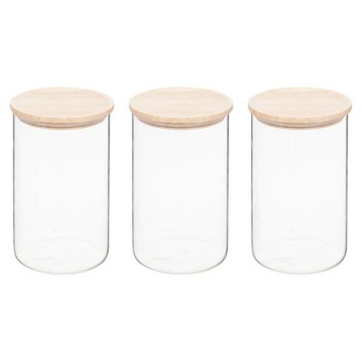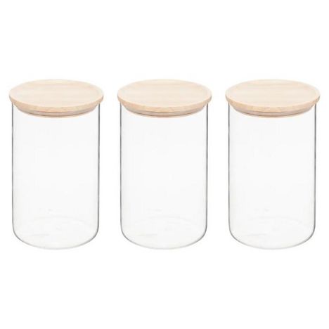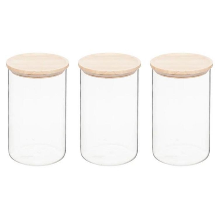 Informations Techniques : Dimensions : D. 10 x H. 17,3 cm Matières : Verre & Bois (Acacia) Spécificités : Pratique & Utile Lot de 3 bocaux de conservation hermétiques Avec couvercle en bois Capacités : 1 L Poids : 0,29 kg Couleur : Transparent & Naturel