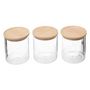 Informations Techniques : Dimensions : D. 8,5 x H. 10,5 cm Matières : Verre & Bois (Hévéa) Spécificités : Pratique & Utile Lot de 3 bocaux de conservation Avec couvercle hermétique en bois Capacité : 350 ml x 3 Certification : FSC Poids : 0,16 kg Couleur : Transparent & Naturel