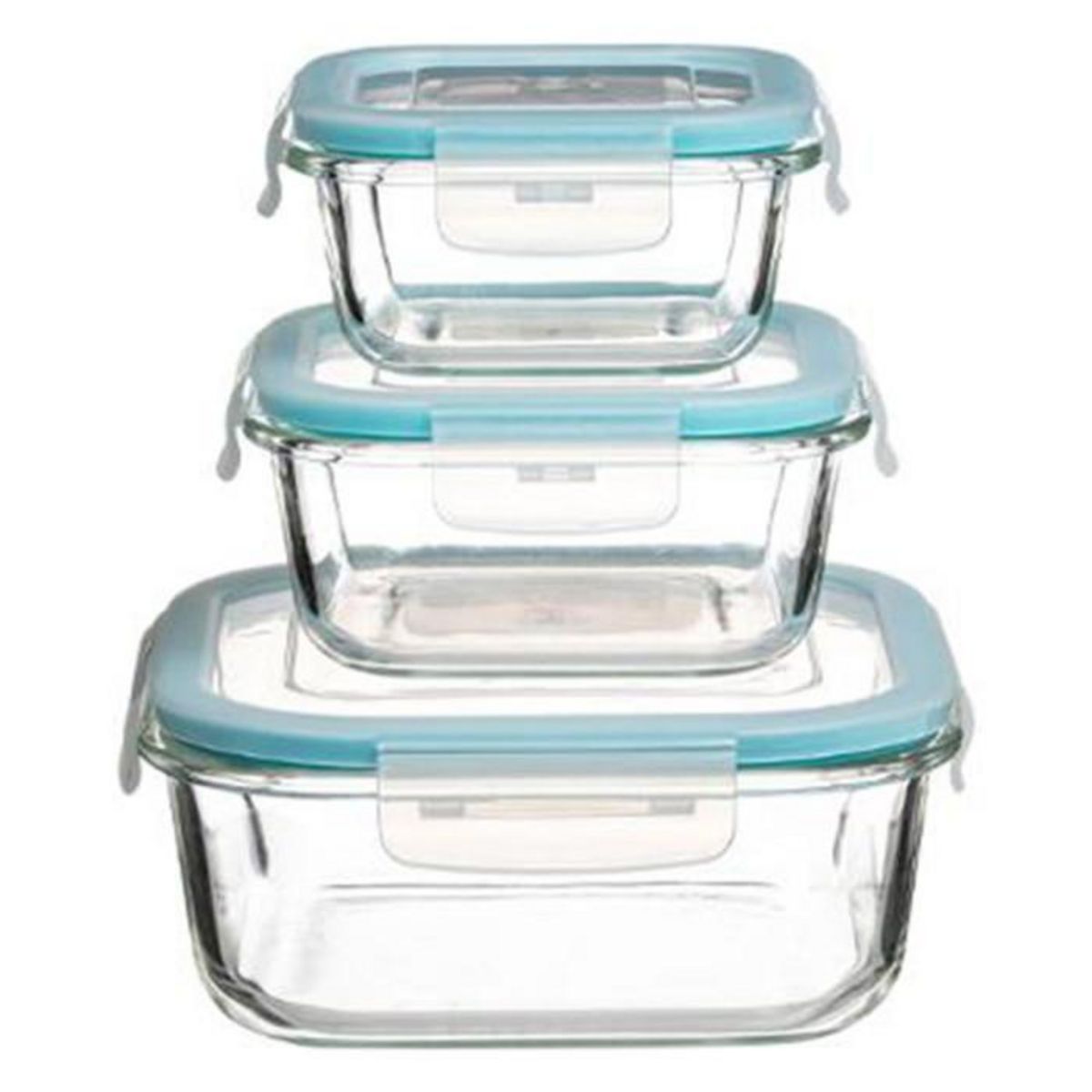 Lot de 3 Boîtes de Conservation Carrées Clipeat 18cm Bleu
