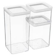 Informations Techniques : Dimensions : L. 20,4 x l. 10,4 x H. 21,2 cm Matière : Polystyrène Spécificités : Pratique & Utile Lot de 3 boîtes de conservation Hermétique Forme carrée Capacités : 0,5L, 1L & 1,5L Poids : 0,47 kg Couleur : Transparent