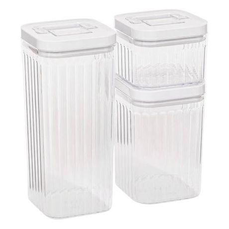 Informations Techniques : Dimensions : Taille S : L. 10 x l. 10 x H. 7,5 cm Taille M : L. 10 x l. 10 x H. 15,1 cm Taille L : L. 10 x l. 10 x H. 22,5 cm Matière : ABS Spécificités : Pratique & Utile Lot de 3 boîtes de conservation Fermeture en 1 click Facile d'utilisation Capacités : 0,35L, 1L et 1,