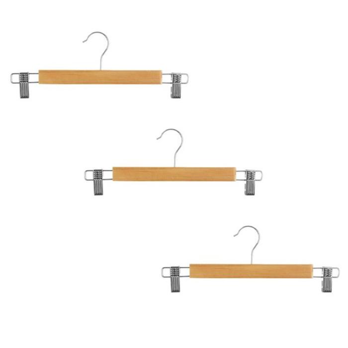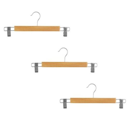 Informations Techniques : Dimensions : L. 33,5 x H. 10 x P. 1,1 cm Matières : Bois & Métal Spécificités : Vendu par Lot de 3 cintres Pratique & utile Élément à suspendre Poids : 0,175 kg Couleur : Naturel
