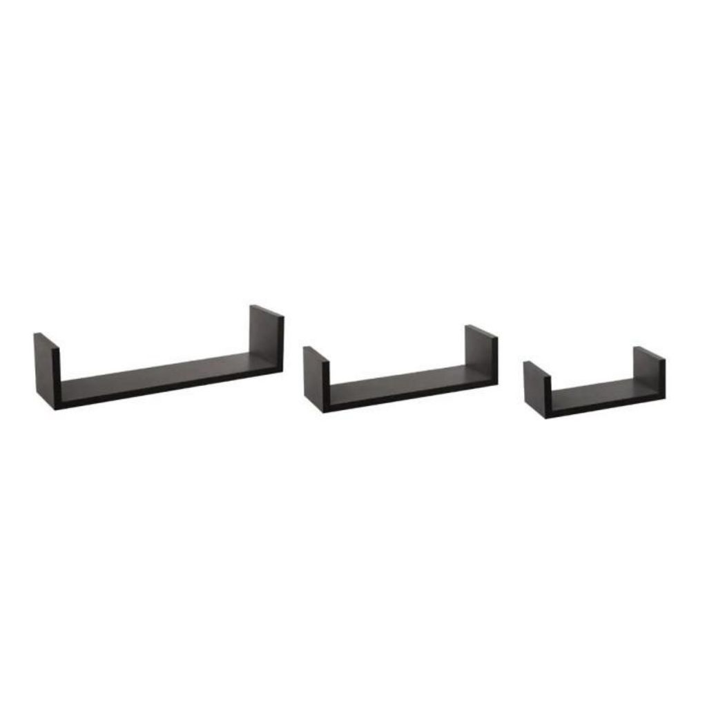 Informations Techniques : Dimensions : Taille 1 : L. 22 x l. 10 x H. 7 cm Taille 2 : L. 32 x l. 10 x H. 8,5 cm Taille 3 : L. 42 x l. 10 x H. 10 cm Matière : MDF Spécificités : 3 tailles différentes Lot de 3 étagères A fixer soi-même Notice incluse Poids : 1,4 kg Couleur : Noir