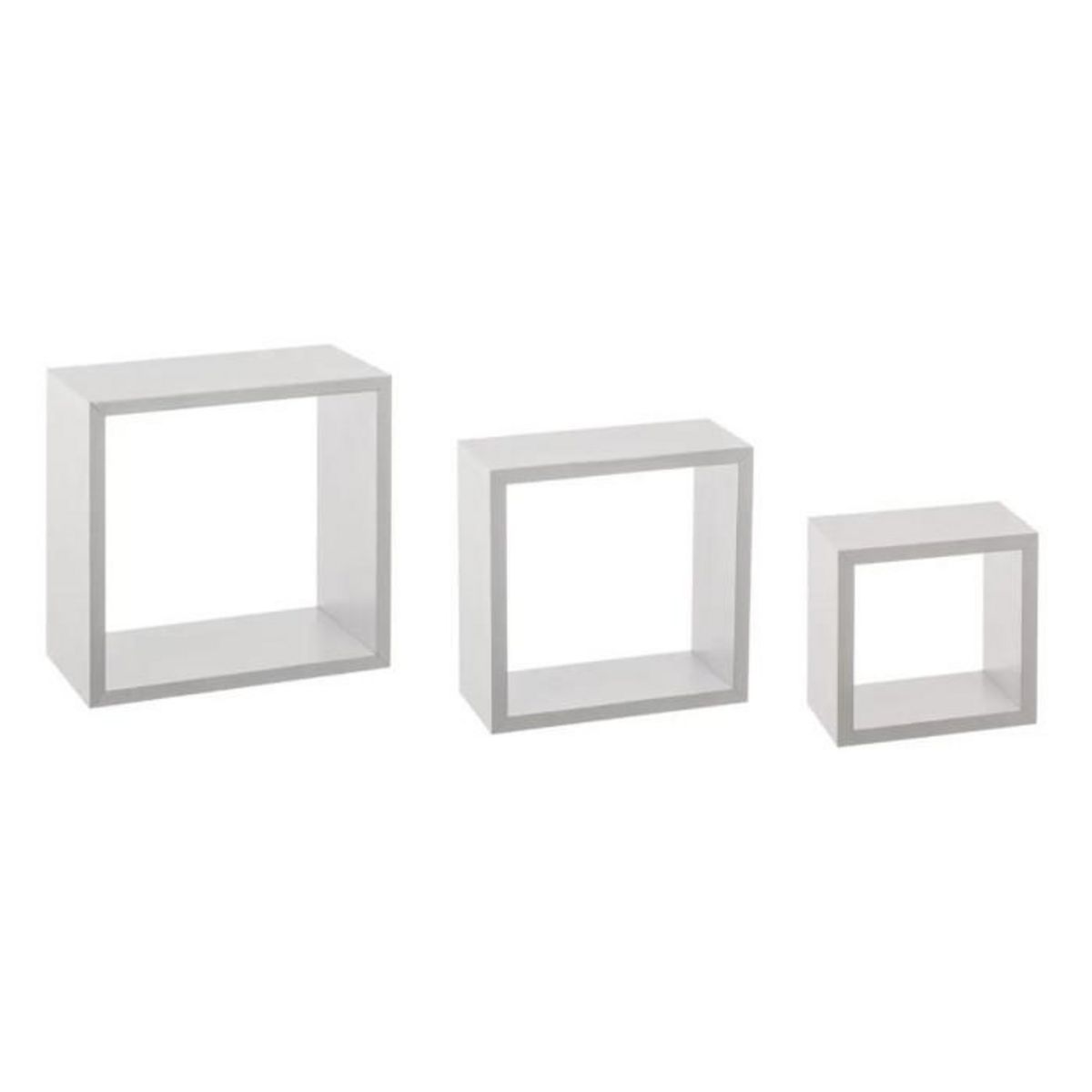 Informations Techniques : Dimensions : Taille 1 : L. 15 x l. 9 x H. 15 cm Taille 2 : L. 20 x l. 9 x H. 20 cm Taille 3 : L. 25 x l. 9 x H. 25 cm Matières : MDF Spécificités : Vendu par 3 3 tailles différentes Livré démonté avec notice de montage A monter soi-même Poids : 1,8 kg Couleur : Blanc