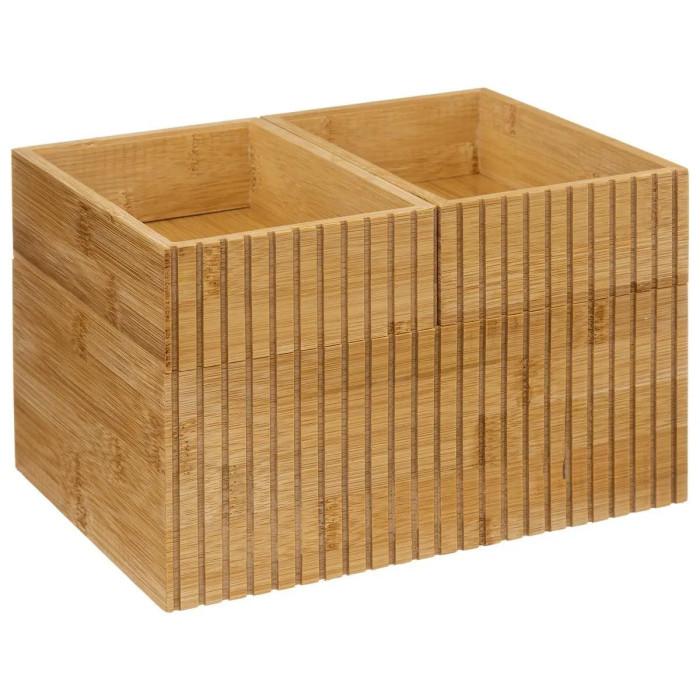 Informations Techniques : Dimensions : Taille 1 : L. 23,5 x l. 17 x H. 16 cm Taille 2 : L. 23,5 x l. 17 x H. 10,2 cm Matière : Bambou Spécificités : Pratique & Utile Lot de 3 Organiseurs Forme Rectangulaire 3 Éléments Superposables Certification FSC (Forest Stewardship Council) Poids : 1,035 kg Cou