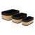 Informations Techniques : Dimensions : Taille XS : L. 20 x l. 10 x H. 8 cm Taille S : L. 25 x l. 15 x H. 10 cm Taille M : L. 30 x l. 20 x H. 12 cm Matières : Bambou, MDF & Tissu Spécificités : Déco & Utile Lot de 3 paniers de rangement Design bicolore Label FSC Poids : 0,69 kg Couleur : Naturel & N
