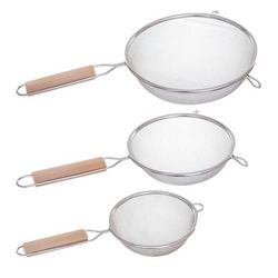 Lot de 3 Passoires Inox & Bois Sieve 35cm Argent
