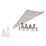 Informations Techniques : Dimensions : L. 10,5 x l. 3,2 x H. 14,3 cm Matières : Acier Inoxydable & Plastique Spécificités : Pratique & Utile Lot de 30 poches jetables Avec 9 douilles réutilisables Poids : 0,11 kg Couleur : Transparent