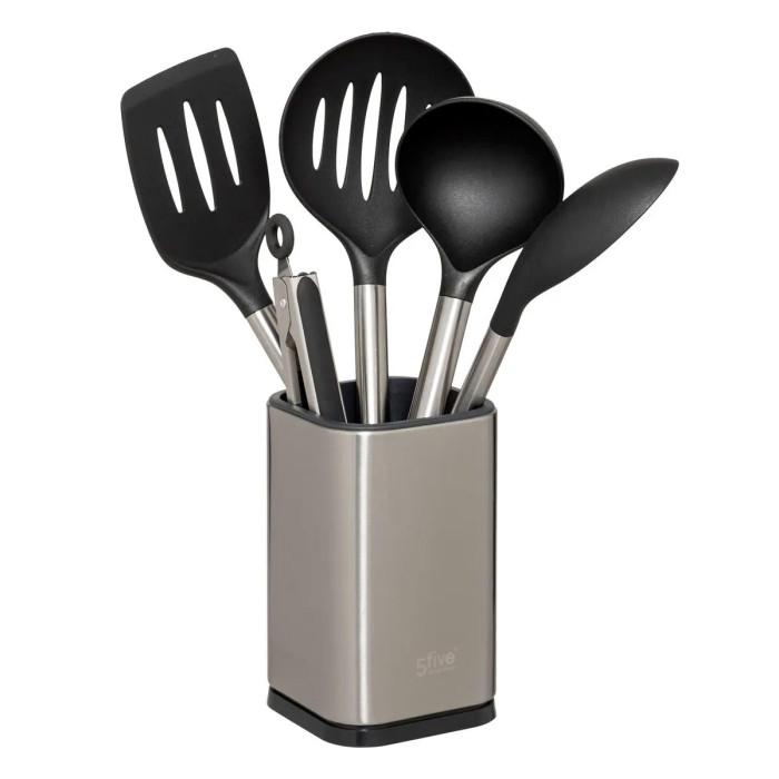 Lot de 5 Ustensiles Avec Pot Inox 36cm Argent