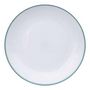 Informations Techniques : Dimensions : D. 25 x H. 2,5 cm Matière : Polystyrène Spécificités : Réutilisable & Moderne Lot de 6 assiettes plates Liseré coloré Forme ronde Passage au lave-vaisselle Poids : 0,14 kg (à l'unité) Couleur : Bleu Pétrole