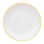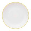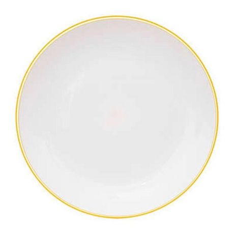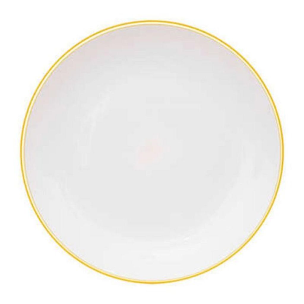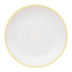 Informations Techniques : Dimensions : D. 25 x H. 2,5 cm Matière : Polystyrène Spécificités : Réutilisable & Moderne Lot de 6 assiettes plates Liseré coloré Forme ronde Passage au lave-vaisselle Poids : 0,14 kg (à l'unité) Couleur : Moutarde