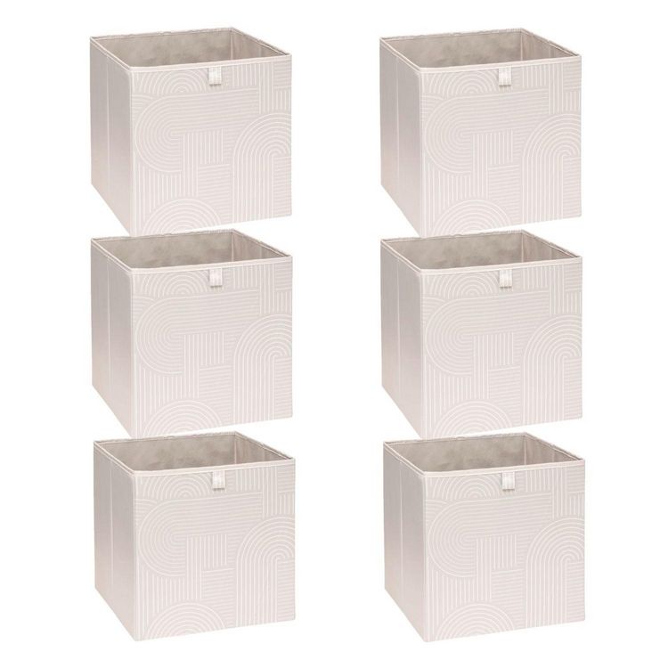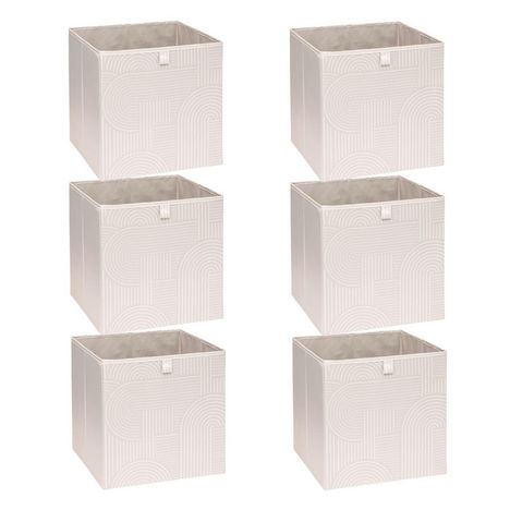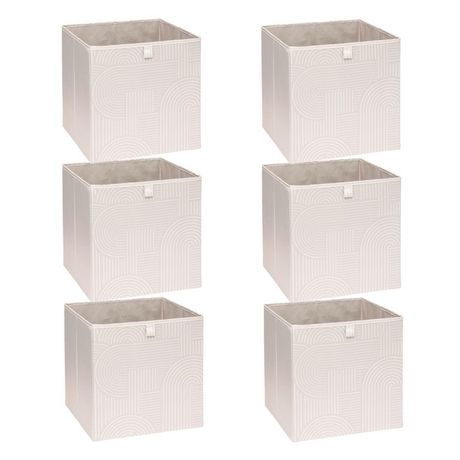 Lot de 6 boîtes de rangement ARCHE - L. 31 x l. 31 x H. 31 cm - Beige