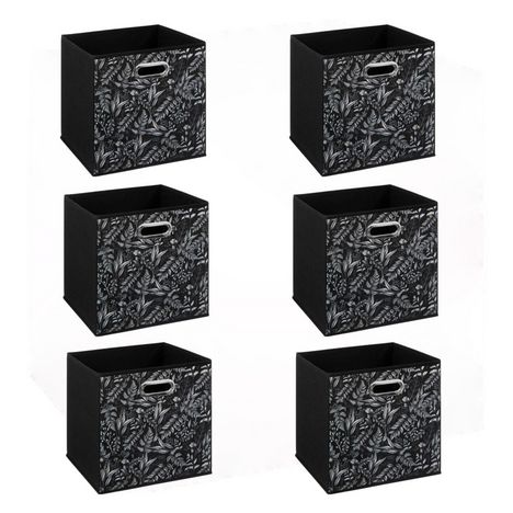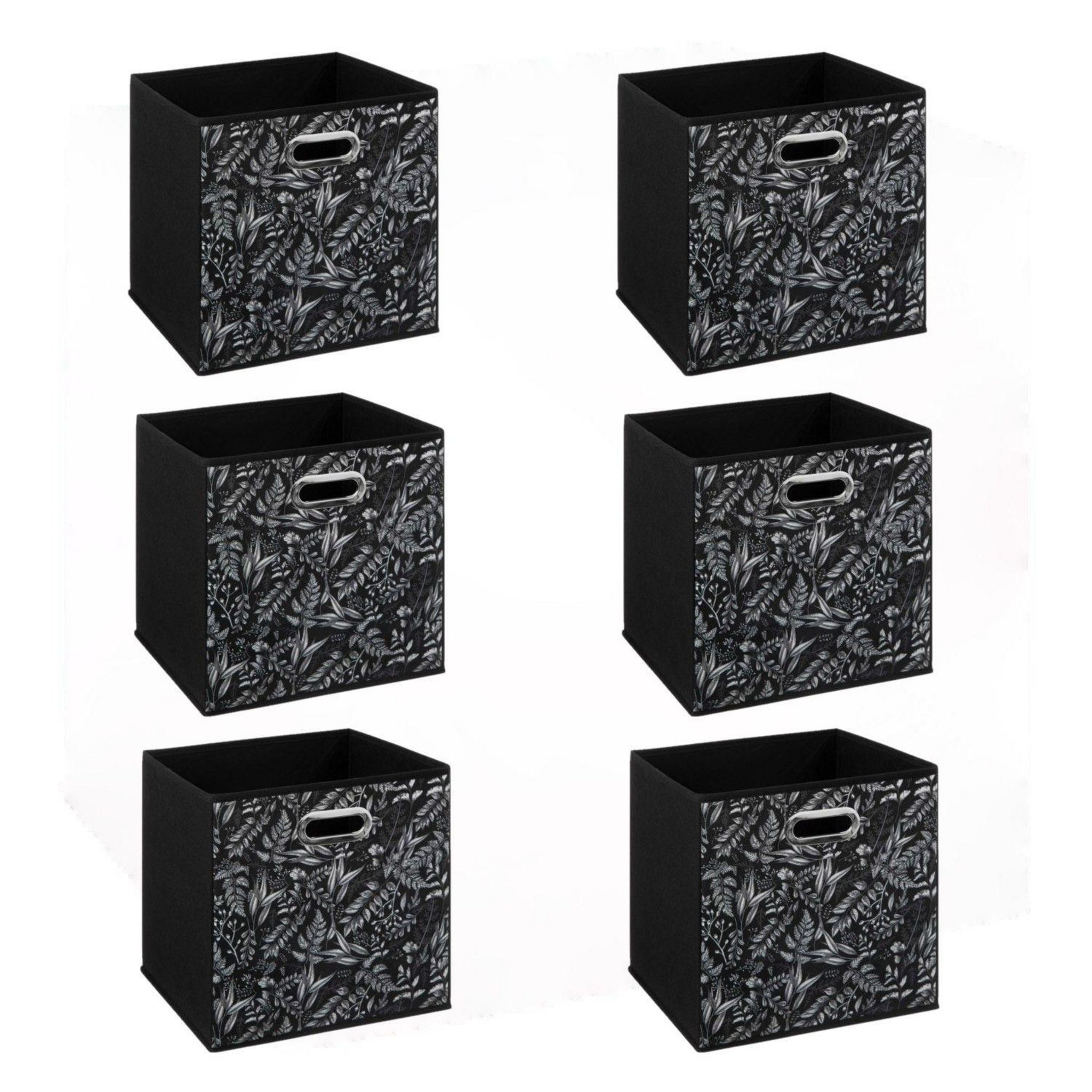 Lot de 6 boites de rangement en tissu Botanical - 31x31x31cm - Noir