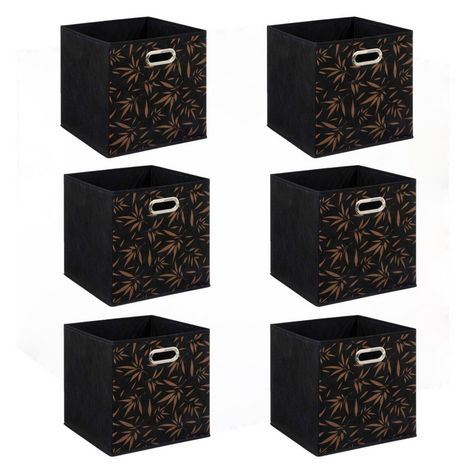 Lot de 6 boites de rangement en tissu Casual - 31x31x31cm - Noir