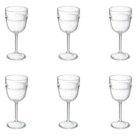 Informations Techniques : Dimensions : D. 8,9 x H. 20,2 cm Matières : Polystyrène Spécificités : Pratique & Tendance Lot de 6 Verres à Vin Forme Ronde Facile d'entretien & d'utilisation Capacité : 390 ml Poids : 0,115 kg Couleur : Transparent