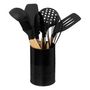 Lot de 7 Ustensiles avec Pot Acacia 30cm Noir