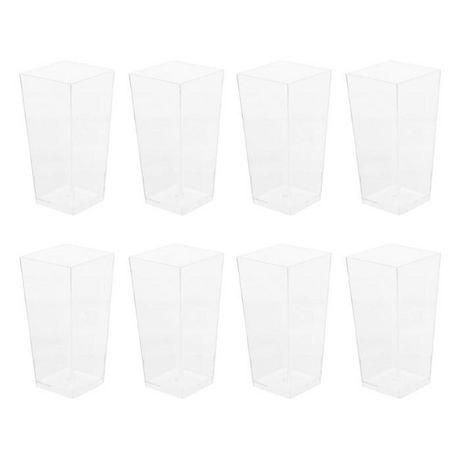 Informations Techniques : Dimensions : L. 4 x l. 4 x H. 8,5 cm Matière : Plastique Spécificités : Pratique & astucieux Lot de 8 verrines Réutilisable Entretin facile Poids : 0,012 kg Couleur : Transparent