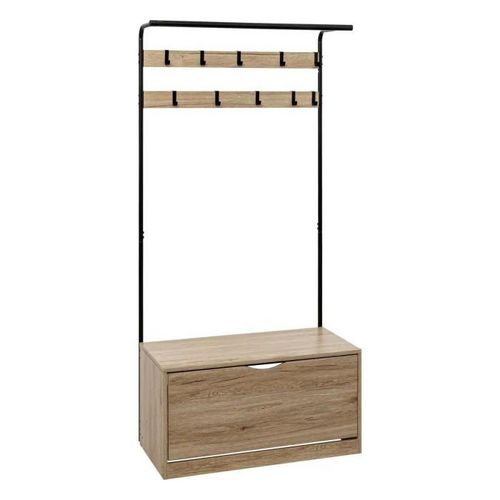 Informations Techniques : Dimensions : L. 80 x l. 35 x H. 175 cm Matières : MDF & Fer Spécificités : Pratique & Utile Meuble d'Entrée Vestiaire Range-Chaussures 15 Paires Banc d'Assise Patère 10 Crochets Ajustables Tringle incluse Poids : 17,77 kg Couleur : Naturel & Noir