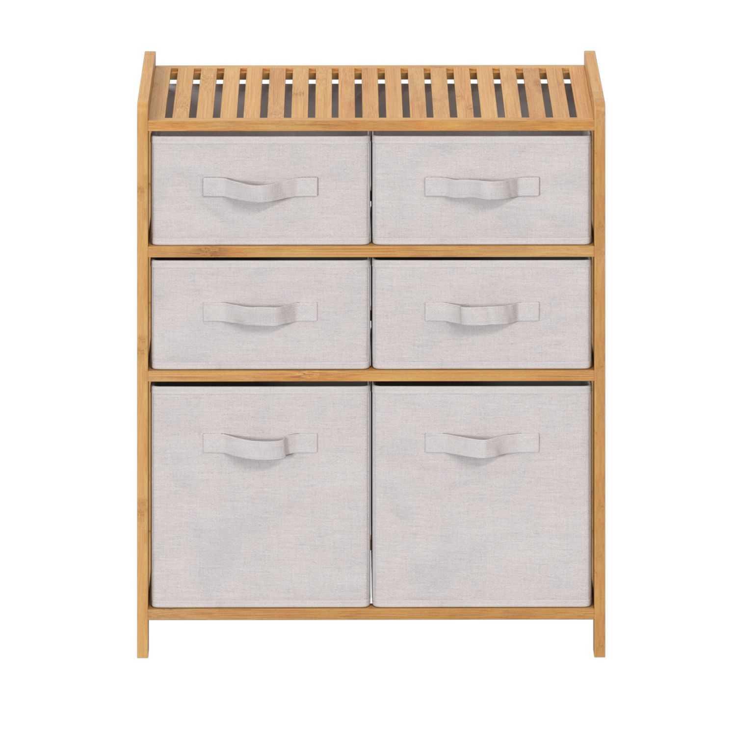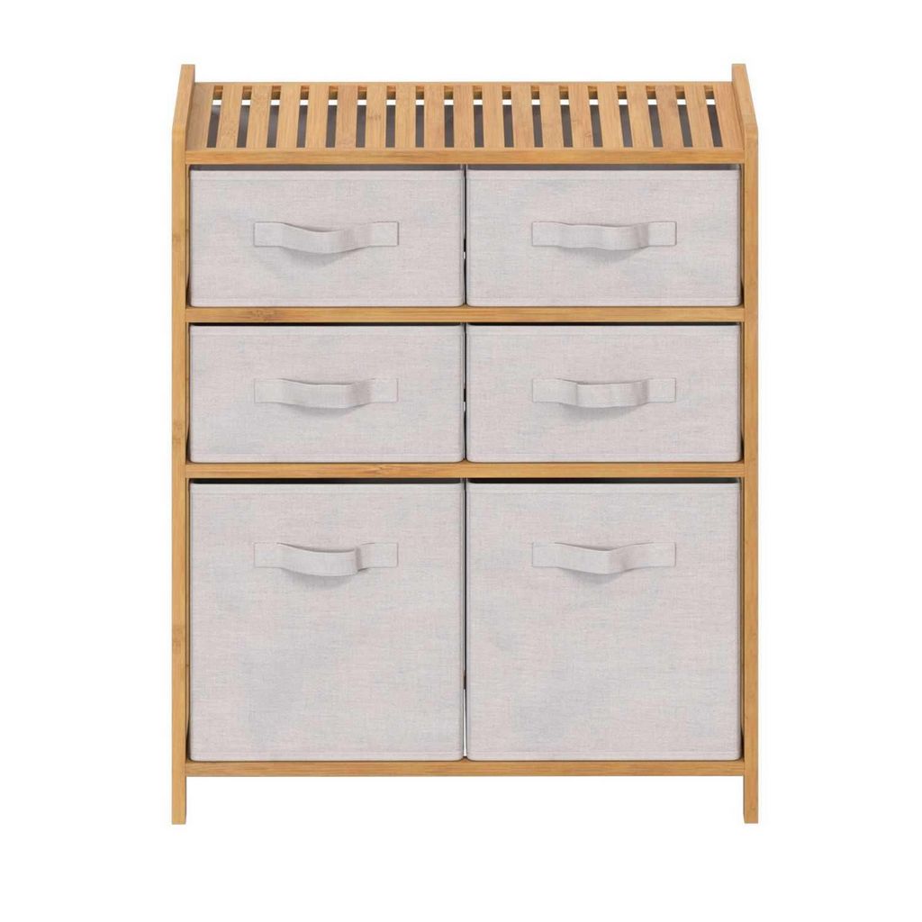 Optimisez votre espace de rangement intérieur avec notre meuble étagère en bambou équipé de 6 Paniers. Pratique et design, ce meuble offre une solution de rangement polyvalente tout en s'intégrant harmonieusement à votre décor. Convient pour la salle de bain, la chambre, la buanderie ou toute autre