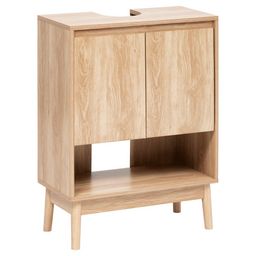 Ajoutez robustesse et élégance à votre salle de bain avec le meuble sous-lavabo Abana. Sa teinte beige boisée apporte une ambiance apaisante et moderne, tout en offrant une solution de rangement discrète et pratique autour de votre lavabo. Ce meuble se distingue par sa sobriété fonctionnelle : deux portes dissimulent une étagère inférieure modulable, idéale pour organiser les produits de toilette, serviettes ou accessoires de beauté. Sa structure compacte le rend parfaitement adapté aux petites salles de bains, tout en maximisant l'espace vertical.