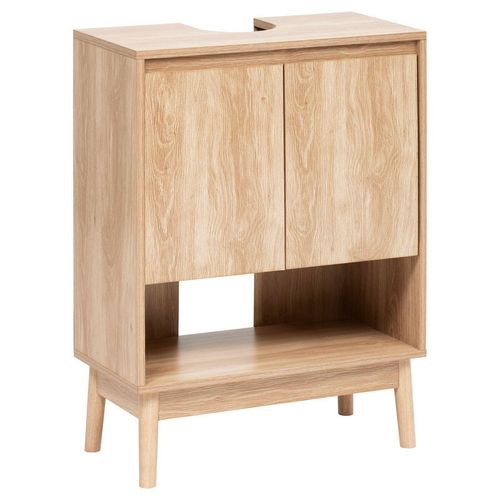Meuble sous vasque 2 portes et 1 niche effet bois naturel ABANA - Beige