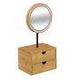 Informations Techniques : Dimensions : L. 45 x l. 15 x H. 20 cm Organiseur : L. 20 x l. 15 x H. 14,5 cm Miroir : D. 19 cm Matières : Bambou Spécificités : Pratique & Utile Miroir de Salle de Bain A Poser Fonctionnement à LED 3 Intensités Lumineuses au choix Pivotant à 360° Chargement par USB type B