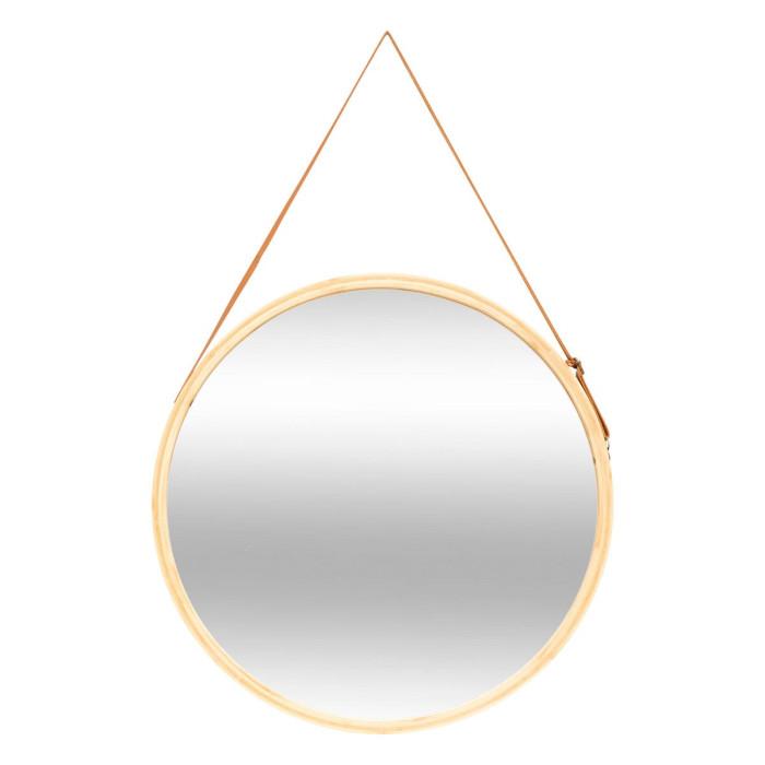 Informations Techniques : Dimensions : L. 50 x l. 1,5 x H. 50 cm Matières : Verre & Bambou Spécificités : Déco & Utile Miroir mural à suspendre Forme ronde Poids : 1,14 kg Couleur : Naturel