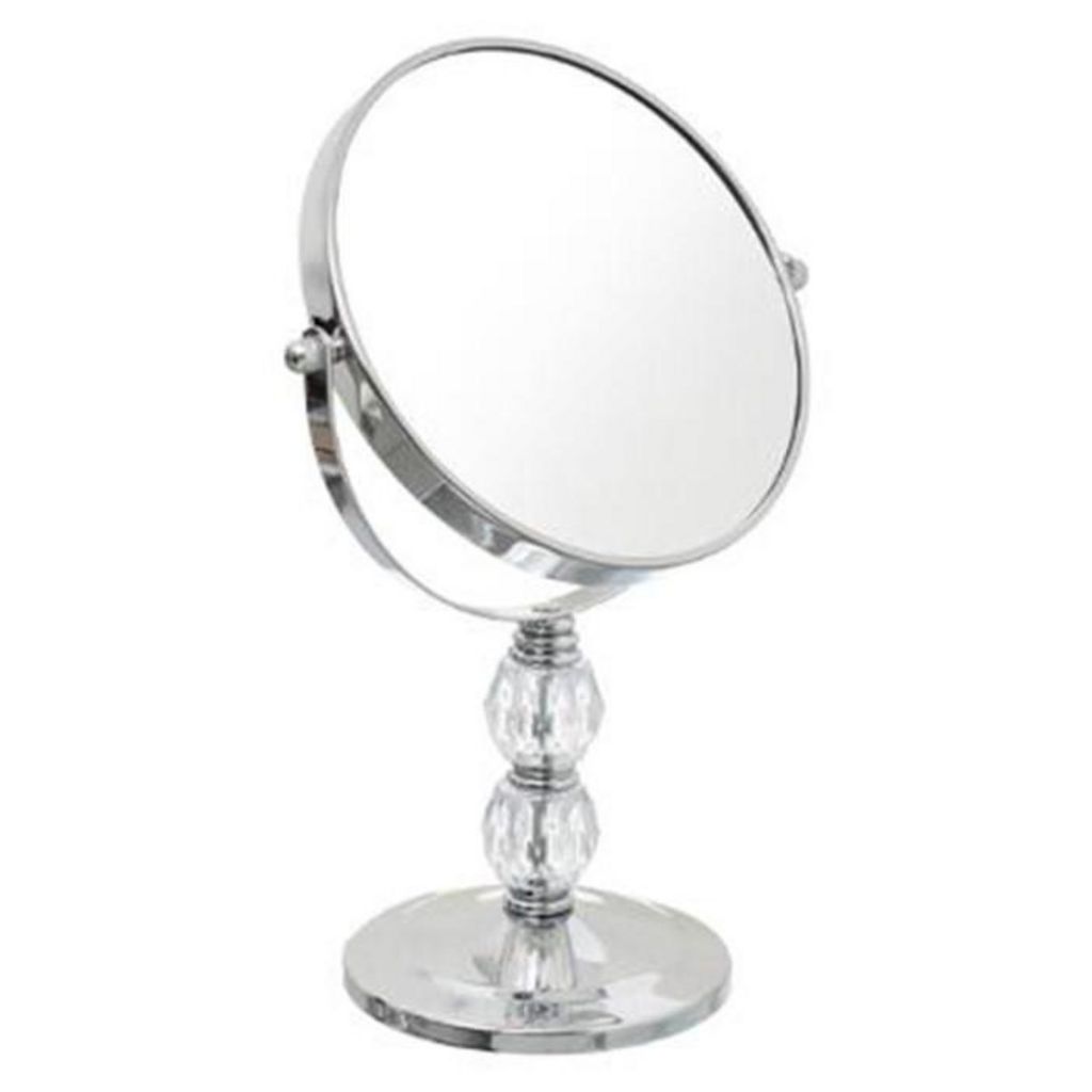 Informations Techniques : Dimensions : L. 12 x l. 20 x H. 30 cm Miroir : D. 16,5 cm Matière : Fer Spécificités : Tendance & Moderne Miroir à Poser design Forme Ronde Double Face Pivotant à 360° Poids : 0,615 kg Couleur : Argent