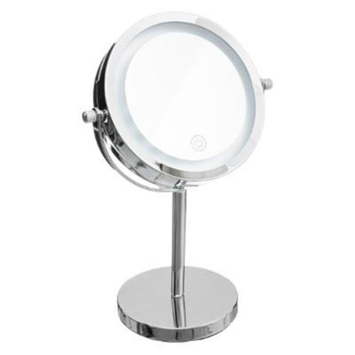Miroir Pivotant Rond sur Pied Led 29cm Argent