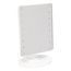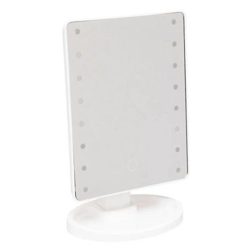 Informations Techniques : Dimensions : L. 16,7 x l. 11,9 x H. 26,1 cm Matières : Verre & Polypropylène Spécificités : Fonctionnel & Utile Miroir sur pied à LED Piles non incluses À monter soi-même Type de piles : 4 x LR6 - AA - 1,5V Poids : 0,37 kg Couleur : Blanc