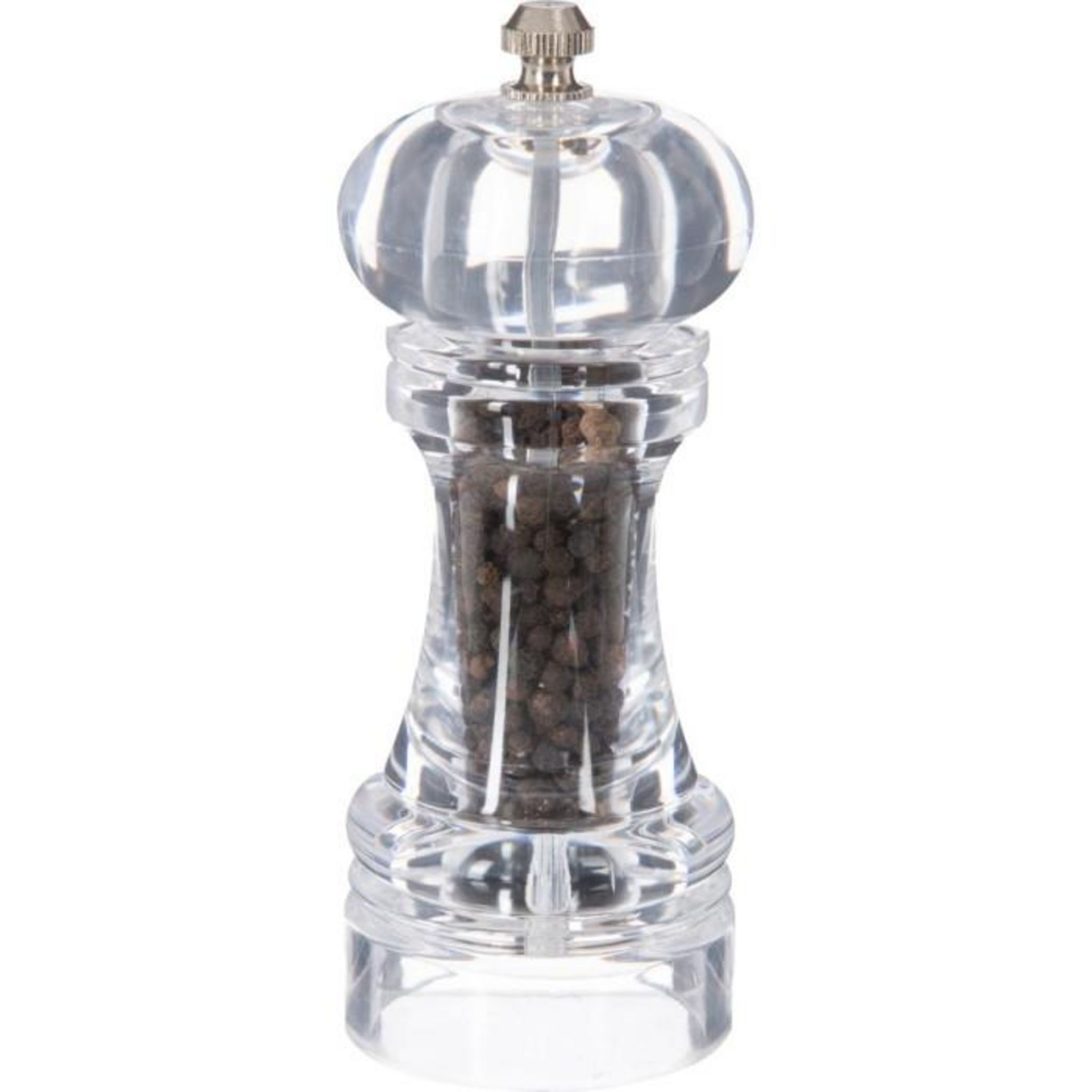 Informations Techniques : Dimensions : D. 5,5 x H. 15 cm Matière : Acrylique Spécificités : Pratique & Utile Moulin Mécanique Forme Ronde Pour Sel & Poivre Utilisation Simple Contenance : 40g (sel) & 20g (poivre) Poids : 0,177 kg Couleur : Transparent