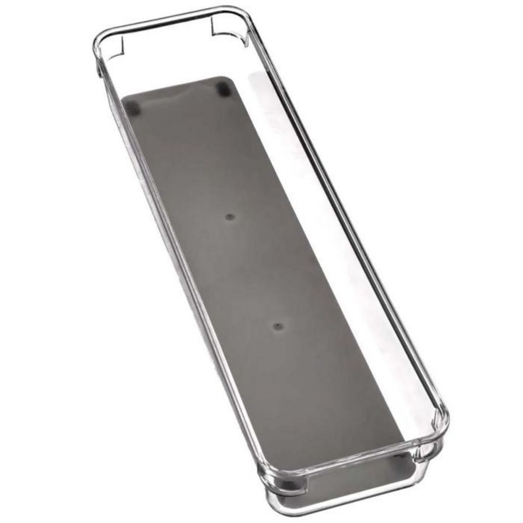 Informations Techniques : Dimensions : L. 9 x l. 32,5 x H. 4,3 cm Matières : PET & TPE Spécificités : Astucieux & Pratique Organisateur de Tiroir Forme Rectangulaire Anti-Dérapant Poids : 0,19 kg Couleur : Gris Foncé & Transparent