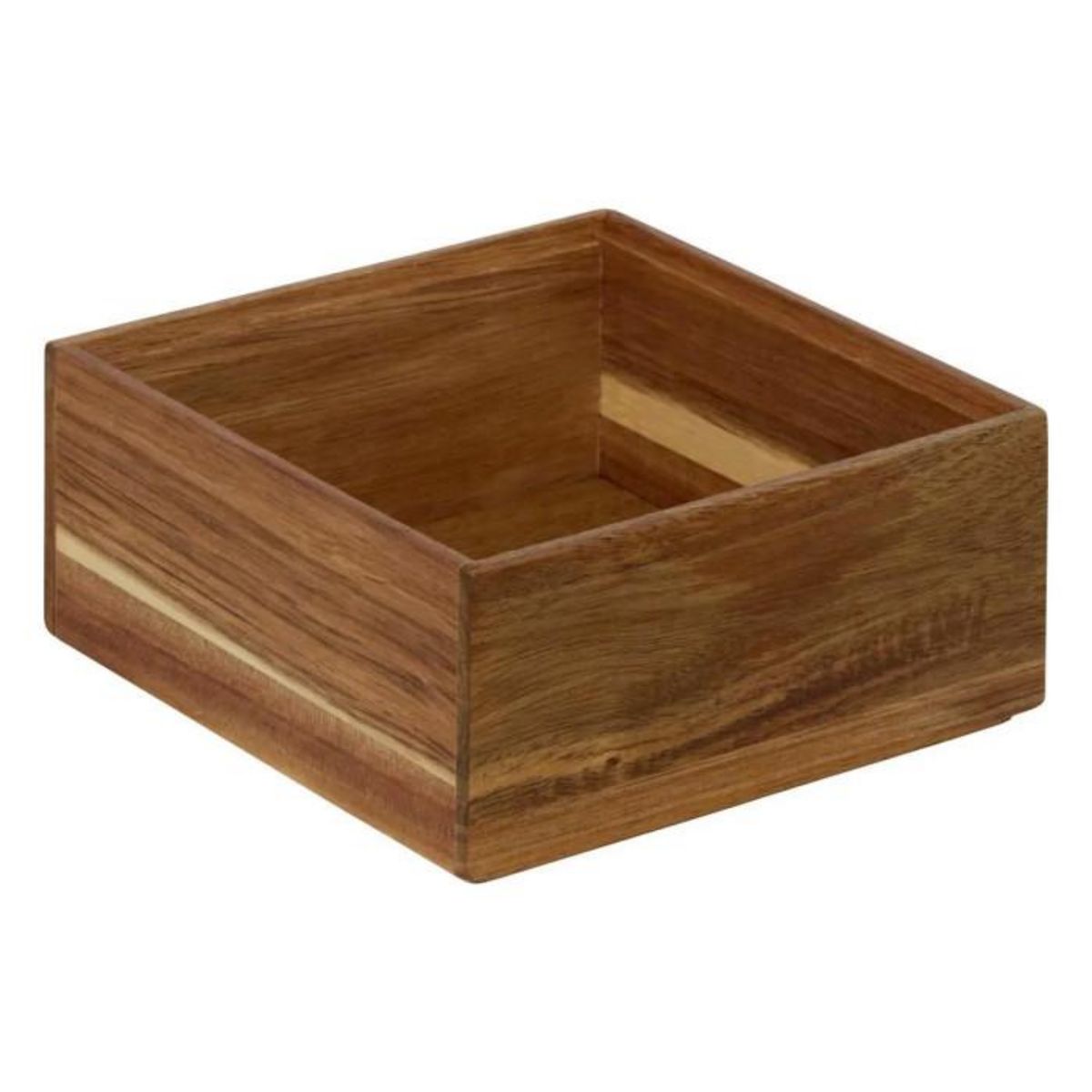 Informations Techniques : Dimensions : L. 15 x l. 15 x H. 7 cm Matière : Bois (Acacia) & MDF Spécificités : Solide & Utile Organiseur de cuisine Forme carrée Poids : 0,23 kg Couleur : Marron