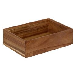 Informations Techniques : Dimensions : L. 15 x l. 23 x H. 7 cm Matière : Bois (Acacia) & MDF Spécificités : Solide & Utile Organiseur de cuisine Forme rectangulaire Poids : 0,29 kg Couleur : Marron