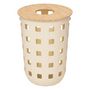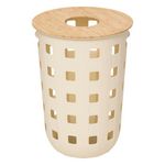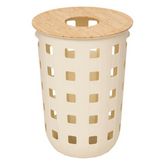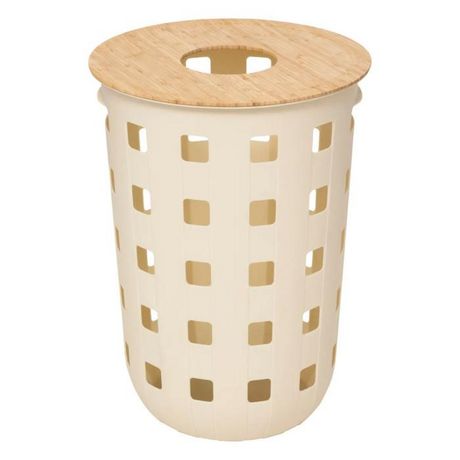 Informations Techniques : Dimensions : L. 43,4 x l. 43,4 x H. 59,8 cm Matières : Bambou & Plastique Spécificités : Pratique & Design Corbeille à linge Couvercle avec ouverture centrale Design ajouré Meilleure aération Label FSC Capacité : 60 L Poids : 1,88 kg Couleur : Beige