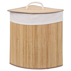 Informations Techniques : Dimensions : L. 35 x l. 35 x H. 50 cm Matière : Bambou Spécificités : Pratique & Utile Panier à Linge d'Angle Avec Anse Contenance : 48 L Poids : 1,445 kg Couleur : Naturel