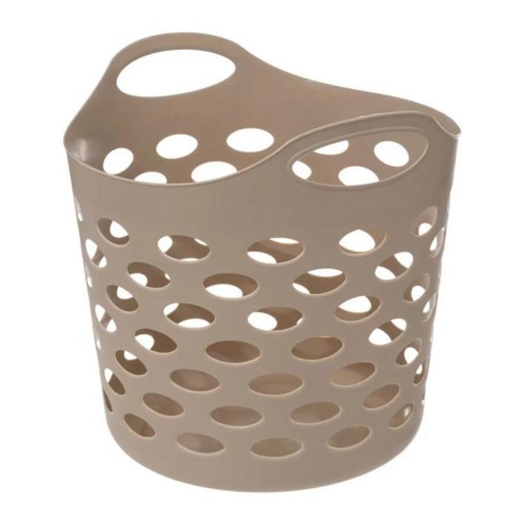 Informations Techniques : Dimensions : L. 40,5 x l. 40 x H. 38 cm Matière : Polyéthylène Spécificités : Pratique & Utile Panier à linge souple Design ajouré Avec 2 poignées Forme ronde Capacité : 28 L Poids : 0,47 kg Couleur : Lin