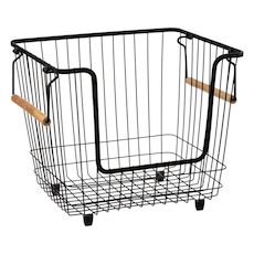 Informations Techniques : Dimensions : L. 33 x l. 26,5 x H. 26,5 cm Matière : Métal Spécificités : Pratique & Utile Panier empilable Avec poignées Pieds anti-dérapant Forme rectangulaire Vendu à l'unité Poids : 0,74 kg Couleur : Noir